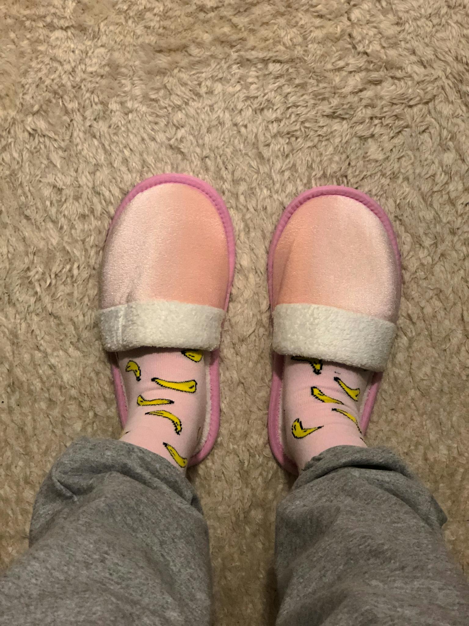 Playful pink socks with yellow bananas, soft bamboo, mid-calf length.